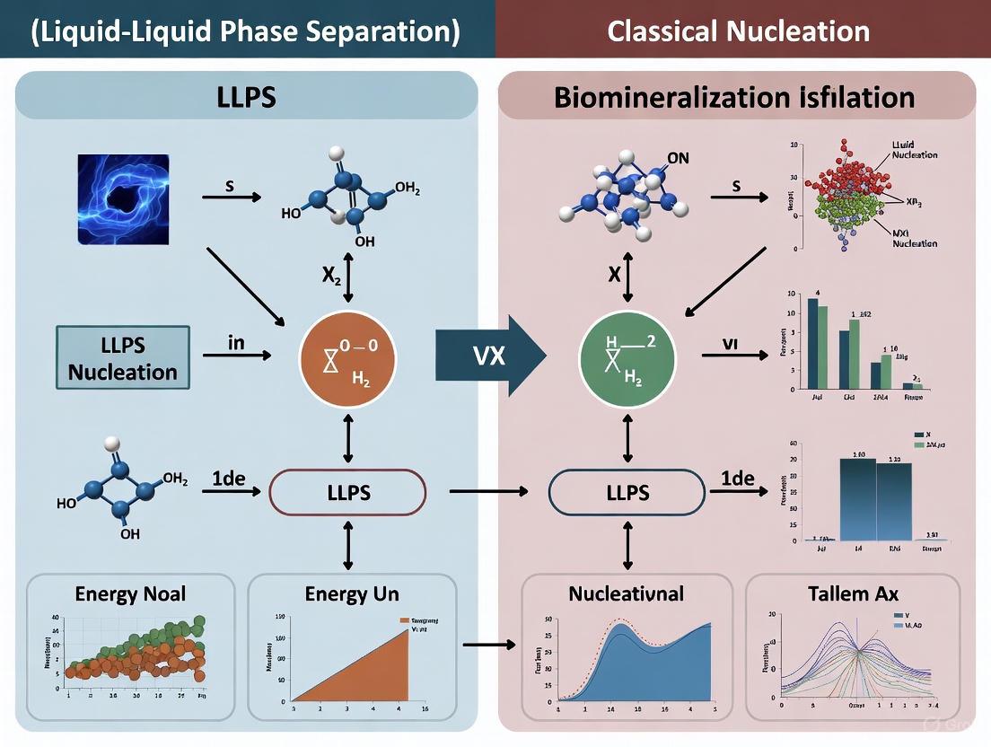 This article explores the paradigm shift from classical nucleation theory (CNT) to non-classical pathways centered on liquid-liquid phase separation (LLPS) in biomineralization.