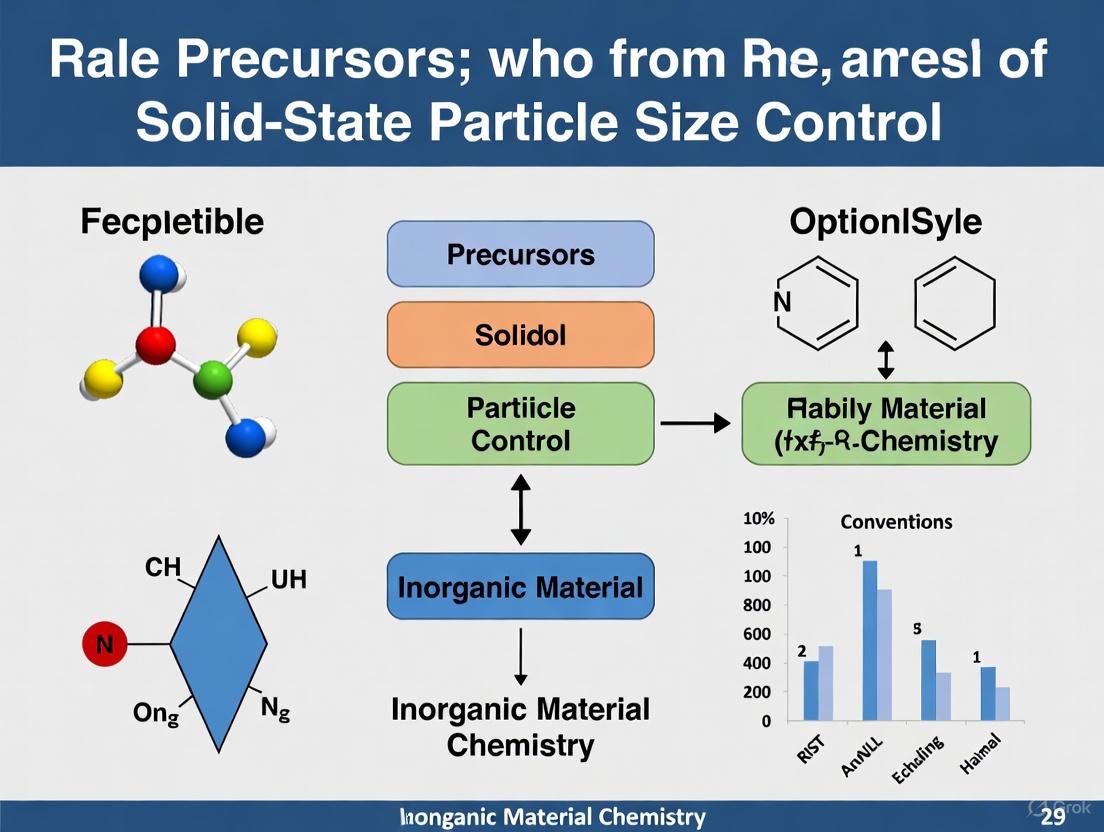 This article provides a comprehensive examination of the critical role precursors play in controlling particle size during solid-state synthesis, a fundamental aspect for optimizing material properties in pharmaceutical development and biomedical research. It explores the foundational growth mechanisms of precursor particles, details advanced synthesis methodologies including co-precipitation and molten-salt techniques, addresses common troubleshooting challenges in achieving uniform particle distribution, and presents computational and experimental validation approaches. By synthesizing recent scientific advances, this review offers researchers and scientists practical guidelines for precursor selection and processing to achieve precise particle size control for enhanced product performance and reproducibility.